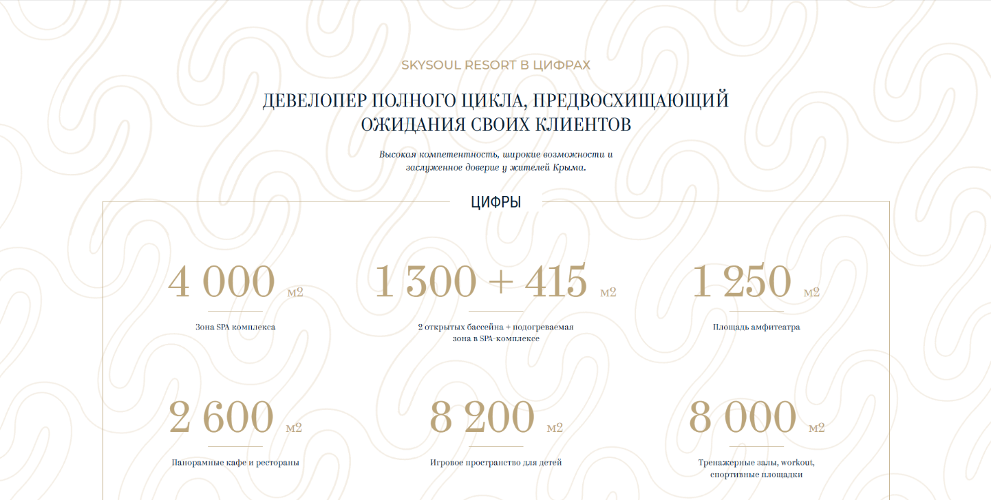 «SkySoul Resort» — это 14,5 гектаров закрытой территории всего в 30 метрах от моря. Это комплекс Бизнес-класса спроектированный по концепции «город в городе» где все необходимое для жизни находиться в в шаговой доступности. Комплекс предлагает разнообразие планировочных решений площадью от 27 до 110 м². Проект состоит из 9 корпусов различной этажности с 2 500 единицами номерного фонда, 80% которого имеют панорамный вид на море.