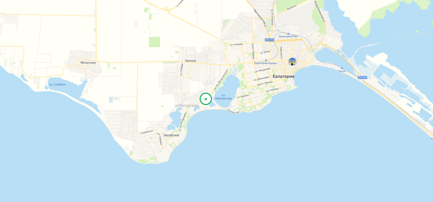 Это один из самых развитых семейных пляжей на Западном побережье Крыма. Пляж находится на побережье Каламитского залива рядом с мысом Евпаторийский, между Евпаторией и поселком Заозерный. Благодаря мысу пляж защищен от сильных волнений. Протяженность пляжа 340 метров чистого песка, с удобным плавным заходом в море и развитой инфраструктурой, которая сделает Ваш отдых максимально комфортным.