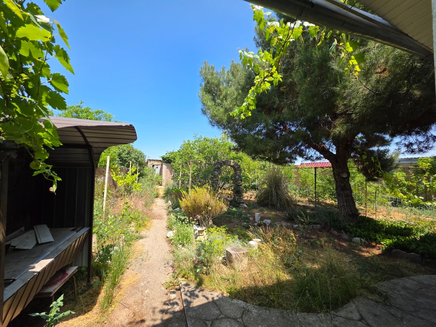 Под домом есть гараж для авто и отдельное помещение-котельная. Во дворе имеются хозпостройки. Посажены плодовые деревья: инжир, гранат, абрикос, яблоня, кизил, абрикос, зизифус, груша, виноград.