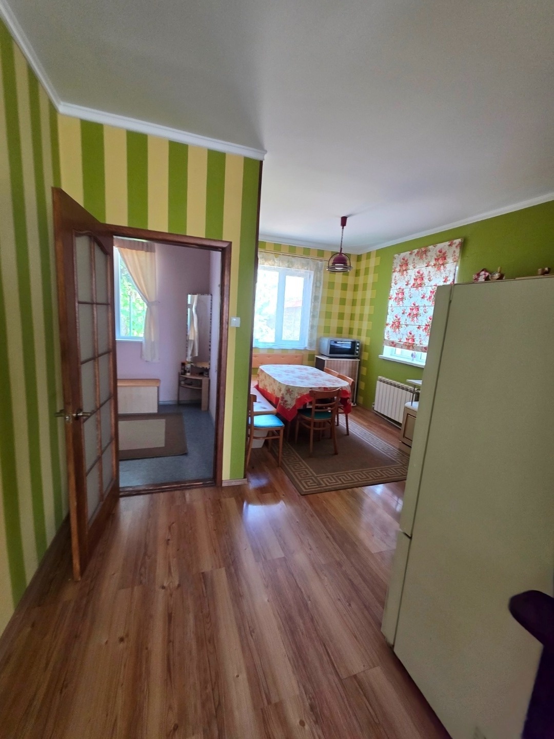 Продается жилой дом-дача в 5-ти км от города Евпатории на берегу озера Сасык-Сиваш и рядом с лесом, сосновым бором. Дом расположен в садовом кооперативе Сосновый Бор. Городская прописка, если перевести дом в жилой. Дом 2007 года постройки, построен из крымского камня-ракушняк, утеплен. Крыша -мягкая кровля, ондулин (утеплитель в 2 слоя). В дом есть два входа. Общая площадь дома 208.9 кв.м. Земельный участок 5 соток. В доме 5 комнат. На первом этаже находится прихожая, гостинная комната с камином, кухня - столовая, санузел, ванная комната, 2 спальни. На втором этаже - 2 спальни (имеют выход на балкон и на террасу), кабинет, кладовая (можно сделать санузел, все коммуникации выведены). В доме автономное отопление- электрокотел+твердотопливный котел. Окна стеклопакеты. Вода центральная (счетчик установлен)+есть скважина (колодец на 2-х с соседкой). Есть интернет. Установлено 2 кондиционера. Спутниковое телевидение. Вся мебель остается!!! Состояние заходи и живи!!!