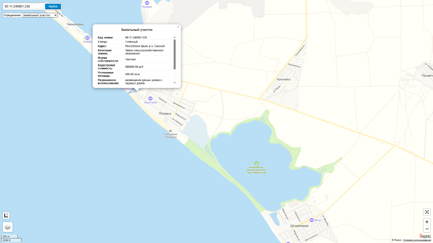 Крым республика, Сакский район, территория тсн Вотчина (с Поповка)